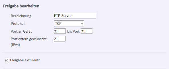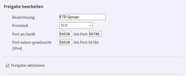 - Den Port 21 benötigt der Client zur Kontaktaufnahme, die Ports 55536-55785 zur Datenübertragung.